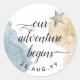 Adventure Begins Watercolor Dusty Blue Wedding Classic Round Sticker