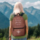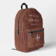 Personalized Adventure Begins Brown Leather Travel Backpack . Design features a white compass with a quote "And so the adventure begins" on a brown leather look print background. Personalize with your name. Makes an ideal gift for travellers, adventurers and anyone with a passion for exploring new destinations