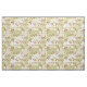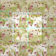 Small-scaled free drawn florals, leaves and swirls on patches of lime-green tan spots and white splashes and ditsy travelling ladybirds