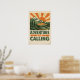 Inspired by classic travel posters, this artwork captures the spirit of exploration through bold geometry, rugged pine forests, and a rising sun over layered mountain peaks. Muted forest greens and burnt oranges evoke the warmth and optimism of early American outdoor design, while worn ink grain and subtle misregistration add authentic vintage character. Strong block typography grounds the composition with a timeless message that celebrates the call of the wild. Perfect for adventurers, hikers, and lovers of retro national park aesthetics, this poster brings nostalgic wanderlust to any space.