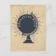 Tabletop world globe silhouette with back sunburst and "Adventure More" curved text on distressed tan background
