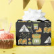 Maps, backpack, hiking boots, tent and more.  Fun wrapping paper features a variety of things needed to adventure into the Great Outdoors