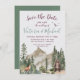 Adventure awaits for the new couple to be! Charming and rustic watercolor woodland Save the date. Features a mountain background with forest, fox and bear.Matching items on this one