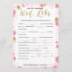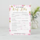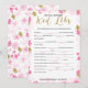 A delicate modern floral bridal shower "Advice and wishes for the bride" game , the design features a pink and gold floral pattern, this card is personalized with the bride-to-be name and the shower date.