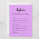Introducing "Advice For the Bride and Groom," a heartfelt and sentimental bridal shower game that transcends mere entertainment, creating a safe and nonconfrontational space for family, friends, and loved ones to offer their invaluable advice and well-wishes to the happy couple. Set against a calming lavender background, the words "Advice for the bride and groom" are elegantly scripted in pretty black font, evoking a sense of elegance and serenity, making it a delightful addition to any celebration.