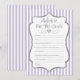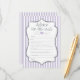 Advice for the bride cards in lavender and silver grey. This elegant and fun bridal advice shower activity sports lilac and white stripes with silver faux glitter accent and silver text.