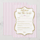 Elegant pink and gold Bridal Advice cards for a fun bridal shower activity. This entertaining bridal shower game has you write down advice for the bride-to-be. Pink and white stripes with gold faux glitter accent and gold text.