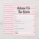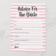 Pink and white Bridal Advice game for the bride to be. Hand drawn white horizontal stripes.