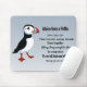 Advice from a Puffin Design Mouse Pad with fully customizable text. Each line is a different size and font, to be customized as desired.