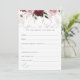 The watercolor burgundy and dusty rose hues, along with the elements of pampas grass and delicate floral accents, create a romantic and sophisticated atmosphere. The "Advice & Wishes" for the bride and groom game adds a fun and interactive element to the bridal shower while also allowing guests to share their love and wisdom. The chic and timeless design is elevated by the elegant calligraphy, which adds a touch of sophistication and personalization. Overall, this design is both beautiful and practical, making it a perfect choice for a bridal shower.Matching items are available.