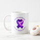 A coffee mug to help spread awareness for Epilepsy featuring a purple awareness ribbon and the text, "Advocate. Educate. Empower.."