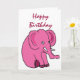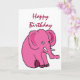 Carte d'anniversaire d'éléphant rose hilarieuse. Idéal pour célébrer avec un toast.