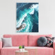 Stunning aerial view of turquoise ocean waves crashing with white foam patterns. Modern, abstract coastal art perfect for contemporary spaces seeking fresh, dynamic ocean-inspired design.