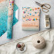 Aerial view of sandy beach with colourful umbrella wrapping paper