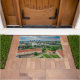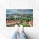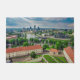 Painting of view from above of Vilnius, Lithuania. Aerial view of Vilnius, red rooftops, river, skyscrapers in business district