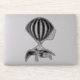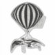 Aerialist wearing wings strapped to his shoulders and feet while suspended from a balloon.