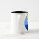 aeroplane flying over water with dolphins Two-Tone coffee mug