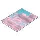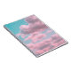 Aesthetic background with beautiful turquoise sky with pink clouds and circle light frame. Minimal creative concept of angel paradise