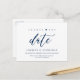 This is the modern aesthetic design themed, in Navy Blue font, Wedding party invitation Rescheduled (postponed / postponement) postcard (Change the date) . It is the perfect and elegant way to make the invitation reschedule announcement to your friends and family.