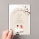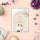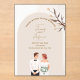 Designed with soft beige and brown tones, this invitation includes a delicate botanical flower branch at the top and an adorable cartoon couple illustration at the bottom, creating a perfect balance of elegance and cuteness.