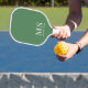 Create your own personalized pickleball paddle featuring elegant monogram initials and aesthetic green chequered pattern background