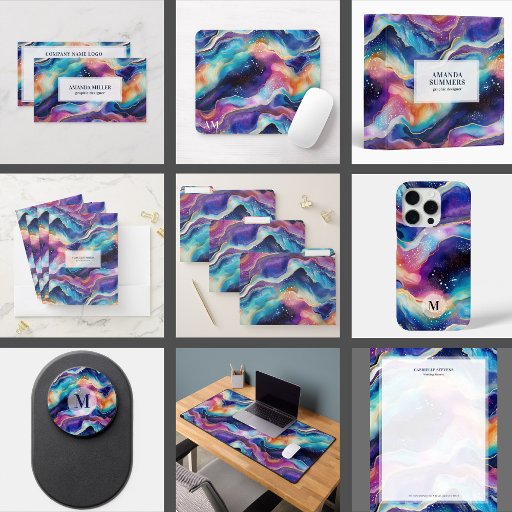 Aesthetic, colourful rainbow glitter agate texture, modern abstract design. Customizable dark blue typography.