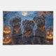 Unleash the spooky spirit with this eerie Halloween design featuring a pack of dogs under a dark, moonlit sky, surrounded by flying bats and glowing pumpkins. Perfect for those who love a touch of frightful fun with their furry friends!