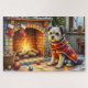 Affenpinscher Sitting Fireplace Christmas Lights Jigsaw Puzzle