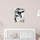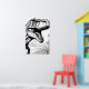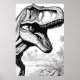 Un énorme dinosaure t-rex, en noir et blanc, sur une affiche murale à colorier ou à afficher telle quelle.
