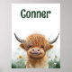Affiche aquarelle vache Highland pour chambre d'enfant. Personnalisez avec vos informations personnelles.