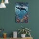 Affiche artistique HD représentant une baleine à bosse accompagnée d'une autre vie marine