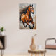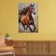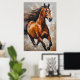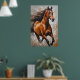 Un portrait HD affiche style peinture à l'huile illustrant un cheval brun courant de façon désinvolte avec ses cheveux coulant dans le vent