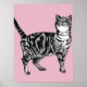 Affiche d'art de chat tigré rayé rose mignon
