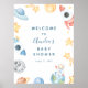 Bienvenue dans votre baby shower avec cette belle affiche, avec un cadre aquarelle d'illustrations spatiales. Ajoutez le nom du client d'honneur, la date de la douche et le texte de bienvenue personnalisé en utilisant les champs fournis.