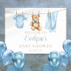 Ce joli panneau d'accueil en baby shower comporte des vêtements de bébé bleu sur un étendoir et peut être personnalisé avec votre nom et votre date spéciale. Conçu par Thisisnotme©