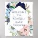 Bienvenue à votre invité avec notre belle affiche de bienvenue baby shower avec cadre bleu marine et rose vif à fleurs.