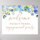 Affiche de bienvenue de fête de fiançailles à fleurs bleu poussiéreux