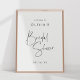 Bienvenue aux invités à votre douche nuptiale, baby shower, fête de fiançailles, mariage ou événement spécial avec cet élégant panneau minimal, disponible en téléchargement numérique ou imprimé professionnellement. Le design présente "bienvenue à la douche nuptiale de [nom]" avec la date sous, en noir doux écriture manuscrite et sans serif lettrage sur un arrière - plan blanc immaculé. Coordonnées avec nos collections de douche nuptiale à script minimaliste.