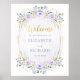 Affiche de bienvenue de mariage floral violet or é