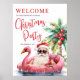 Bienvenue invités à votre fête de Noël avec ce signe de bienvenue gai et tropical. L'aménagement comprend un Père Noël décontracté avec des lunettes de soleil et se prélasser dans un flotteur flamand rose, entouré de vagues de l'océan et d'un palmier avec des ornements en arrière - plan, parfait pour donner un ton amusant et ensoleillé. Sur le côté gauche, on peut lire "Welcome To The [Family Name]’s" dans une police serif classique, avec "Christmas Party" ci-dessous dans un élégant script pour une touche festive. La date de l'événement apparaît dans le coin inférieur gauche de la typographie serif correspondante. L'oeuvre animée de la plage sur la droite ajoute une touche ludique et unique, idéale pour les fêtes dans des endroits tropicaux comme la Floride, Hawaii, ou les Bahamas, ou pour toute personne qui aime juste une ambiance de vacances côtières. Tout le texte, les polices et les couleurs peuvent être customisés pour s'adapter à votre événement. Disponible soit en version imprimée, soit en tant que fichier numérique téléchargeable à imprimer à la maison ou localement.