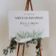 Affiche de bienvenue de réception de mariage verdoyante Bienvenue à vos invités avec ce panneau de salutation fleurie d'aquarelle verdoyante lors de votre journée spéciale.
