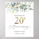 Affiche de bienvenue 20e anniversaire de Mariage. Cette conception présente une aquarelle illustrant le feuillage verdoyant et les feuilles d'eucalyptus. En haut de l'image - confetti d'effet verdâtre.