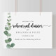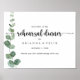 Ce panneau vert de réception horizontal de la répétition est parfait pour une simple répétition mariage. L'aménagement comprend des branches et des feuilles d'eucalyptus botaniques élégants dessinés à la main dans des aquarelles.