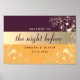 Préparez le terrain pour une soirée de célébration avec notre affiche de bienvenue pour le dîner de répétition aux tons de bijoux vintage. Élégante et charmante, cette affiche présente des teintes violettes riches et une délicate dentelle florale dorée, évoquant un sentiment de romance vintage. Avec une écriture calligraphique moderne pour accueillir les invités, elle donne le ton pour une soirée mémorable remplie d'amour et de rires. Illuminez votre dîner de répétition avec cette touche enchanteresse d'élégance bohème.