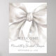 Affiche de bienvenue de Fête des mariées de cabot blanc. Ce panneau élégant présente un arc aquarelle blanc surdimensionné qui s'étend sur le sommet, créant ainsi un point focal classique et traditionnel. Les polices grises, combinées à la typographie script et serif, apportent une touche sophistiquée. Le design comprend le nom et la "Fête des mariées" de la future mariée, ainsi que la date de la douche pour un look poli et cohésif. Entièrement personnalisable, vous pouvez ajuster les polices et les détails en fonction de votre thème. Ce design est également très réussi pour un thème "Elle est en train de nouer", ajoutant une note douce et festive à la présentation générale. Parfait pour célébrer la future mariée, cette enseigne intemporelle et élégante apporte une touche élégante à votre décor de douche nuptiale, le rendant adapté à toutes les saisons et un souvenir inoubliable. Disponible soit en version imprimée, soit en tant que fichier numérique téléchargeable à imprimer à la maison ou localement.