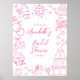 Bienvenue aux invités avec cet élégant panneau de douche nuptiale avec "Bienvenue à la Fête des mariées de [Nom de la Mariée]" dans un mélange sophistiqué de polices serif et de caractères en rose, avec la date de douche affichée ci-dessous. Le design comprend des illustrations délicates dessinées à la main en rose, comme une boule de disco étincelante, une tour de champagne, des cloches mariages et des coeurs, ajoutant une touche fantaisiste mais raffinée. Entièrement personnalisable, vous pouvez ajuster le texte, les couleurs et les illustrations pour qu'ils correspondent au thème de la douche nuptiale. Disponible soit en version imprimée, soit en tant que fichier numérique téléchargeable à imprimer à la maison ou localement.