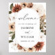 Bienvenue à vos invités à votre mariage ou à votre événement facilement avec votre boho Rustic Neutral Boho Floral poster. Peinture à la main avec terre cuite naturelle et neutre, champagne, blanc, pêches, fleurs beiges et verdure. Idéal pour les mariages et les fêtes.