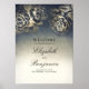 affiche vintage fleurie marine bleu et or mariage de bienvenue