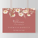 Cette enseigne classique de mariage boho blush fleur sauvage est parfaite pour un mariage rustique. Le design présente gracieusement et élégante aquarelle à la main des fleurs sauvages blush, rose, multicolore soigneusement arrangés en bouquets attrayants. Faites de cette affiche votre propre en ajoutant le nom de la mariée et du marié, ainsi que la date du mariage.