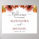 Tournesol bordeaux et jaune Feuillage extérieur rustique Aquarelle Mariage Affiche de bienvenue Élégante et moderne Invitations sur arrière - plan blanc - comprend une belle et élégante typographie avec des feuilles botaniques modernes automne ou automne pour la célébration spéciale de mariage.
